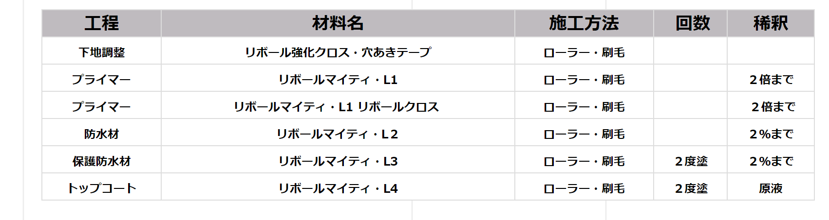 1種類のプライマーでアスファルト、ウレタン、シート、FRPなどの各種既存防水材、木材、各種金属等に対して対応することができます。